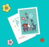 The colours will reproduce best when sent to a printshop, but for a more cost-effective option, printing on your home printer* will work fine. Print double-sided (or single if you want two pages), cut in half, and you're ready to go. Finished invitation size is A5.